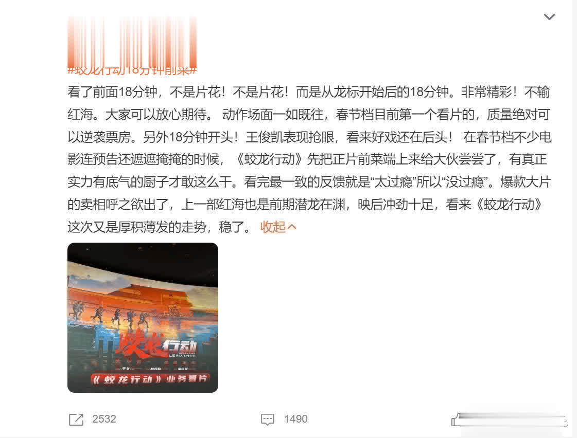说《蛟龙活动》吊车尾,不是埋汰这部电影也莫得特意黑宣发的意想,他们即是很拉胯。