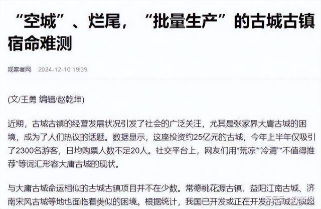 于是乎各地纷繁启动效仿开采古镇,试图推进经济的发展,但是,各地大量量开采的古镇并莫得得到预期的发展,这些浩浩汤汤斥巨资开采的古镇,反而纷繁唱起了“空城戏”。