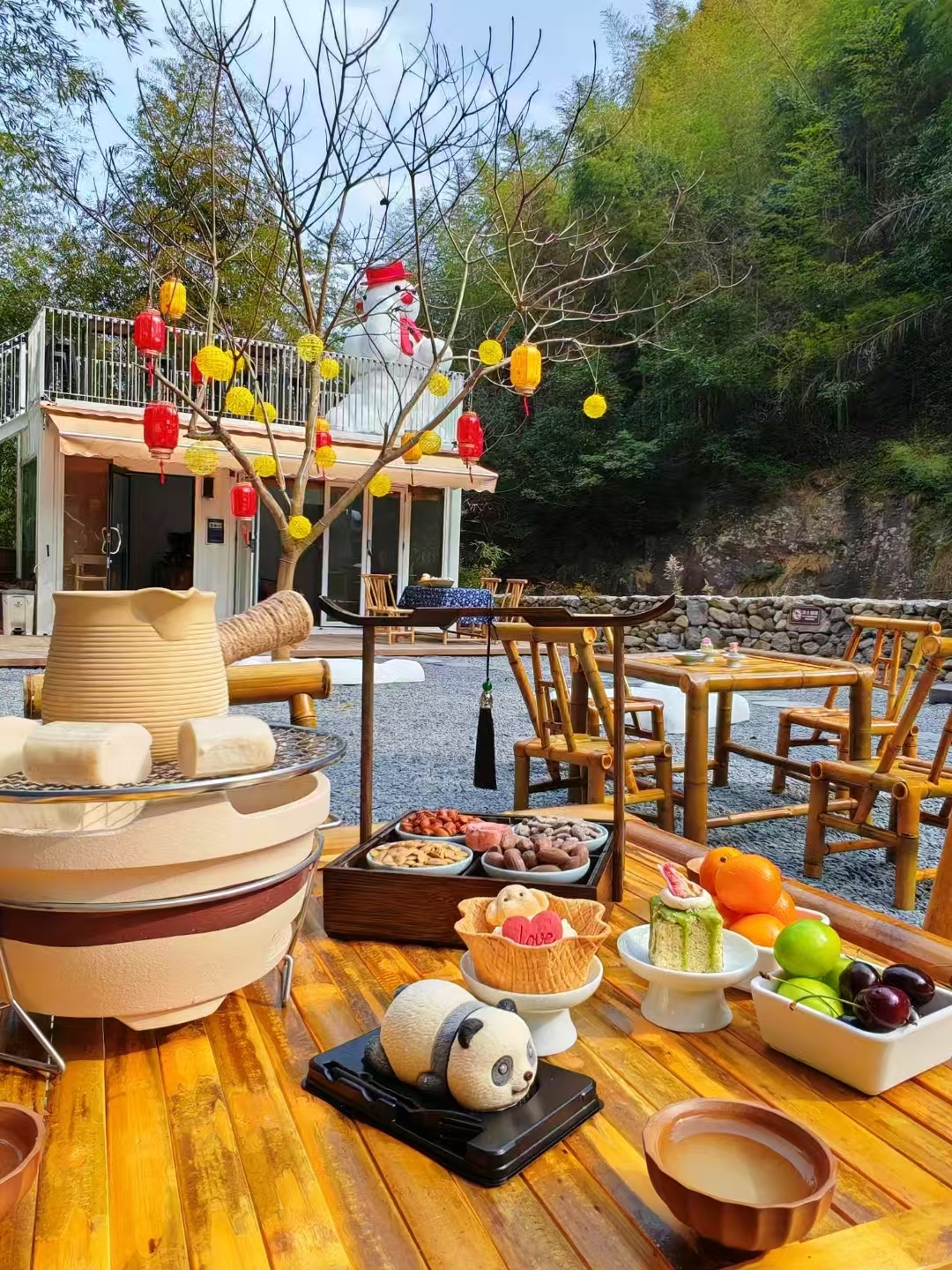 在这里,年青东说念主不错围炉煮茶、涮吊炉暖锅、喝瀑布咖啡、品窑炉面包,以寰宇为幕,偷得浮生半日闲。