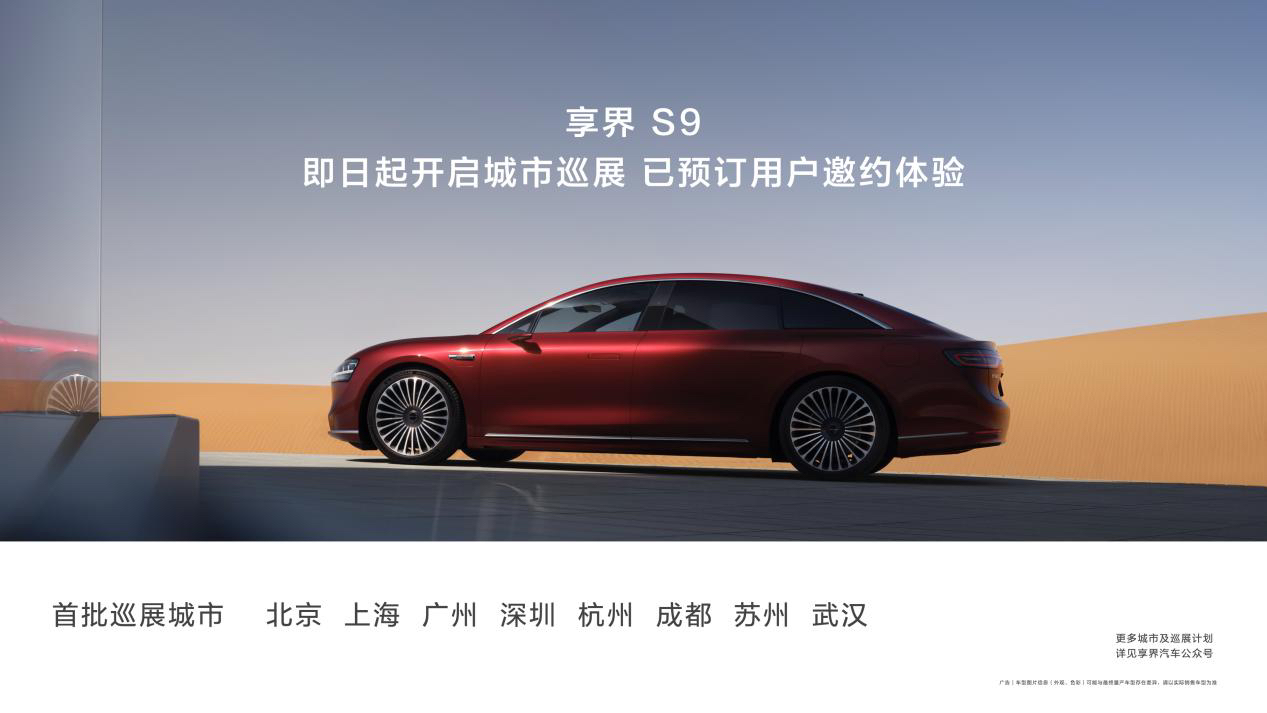 7月8日起,享界 S9细腻开启世界巡展,首批巡展城市覆盖北京、上海、广州、深圳、杭州、成都、苏州、武汉,已预订用户将获邀约体验。