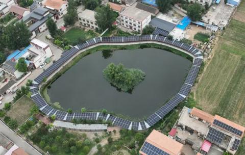 付楼村白鹭塘四周搭建了一圈光伏长廊。受访者供图
