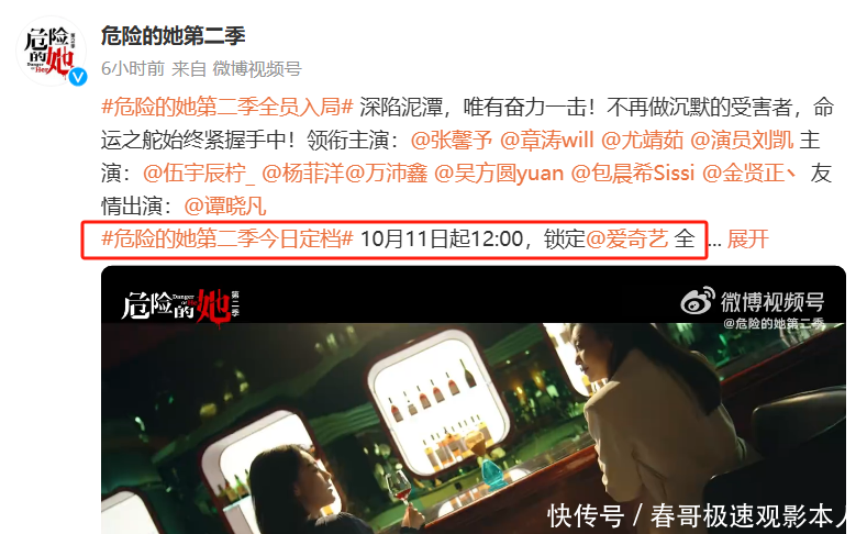 《危急的她》第二季定档于10月11日,将在桃厂上线。