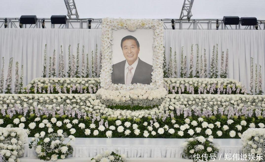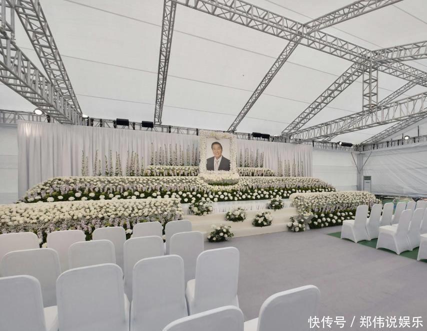 很快李兆基的灵堂照也曝光了,灵堂现场也很简便,李兆基的遗照被白色的花海围绕在正中央,周围的颜色也齐所以白色为主。