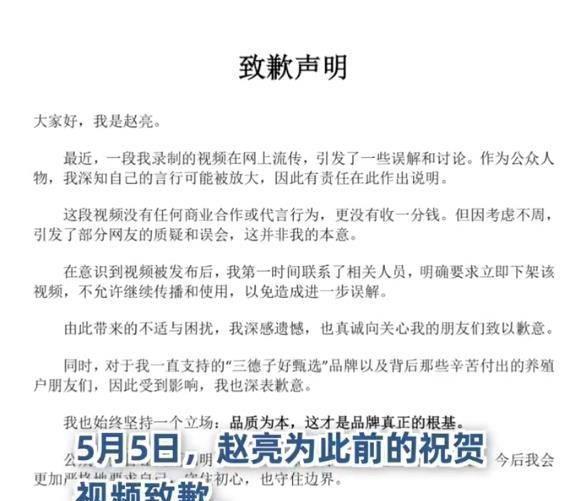 说念歉暗示无交易配合或代言,未收取任何的用度。只是只是接头不周形成了歪曲,向公众说念歉。但部分网友质疑赵亮说念歉的背后,是不念念因为个东说念主养鸡的品牌遭到影响,是以发声抛清关系。